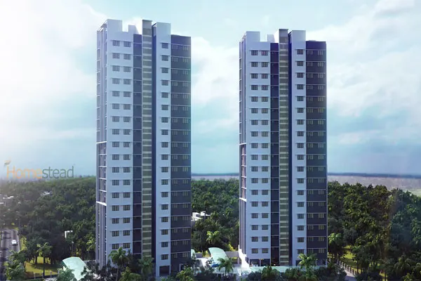 Reaching sky high is now made possible. Homestead Riverine. Located at the centre of Malappuram Town alongside a serene Kadalundi river, this one will be the tallest residential twin tower in Malappuram upon its completion. Up here, life will be too splendid to live with shining stars and floating clouds.A grand experience of estate living in the sky-sphere is beyond your imagination. The developers dream was to design and construct a soaring majestic structure, a sky-scraping icon that would position as the emblematic pride of Malappuram. That is precisely the role Riverine fills. K-RERA Registration No: K-RERA/PRJ/218/2020 Project approved by:- State Bank of India, Canara Bank, HDFC Ltd., Sundaram BNP Paribas Home Finance Limited, Bank of Baroda, Central Bank of India